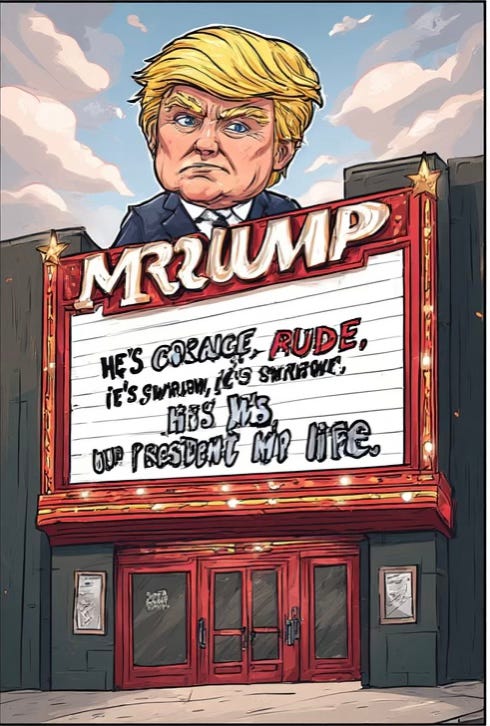 Here’s the excerpt which promted me to go to Perchance AI Illustrator and ask for a cartoon of Trump with garbage coming out of his mouth.