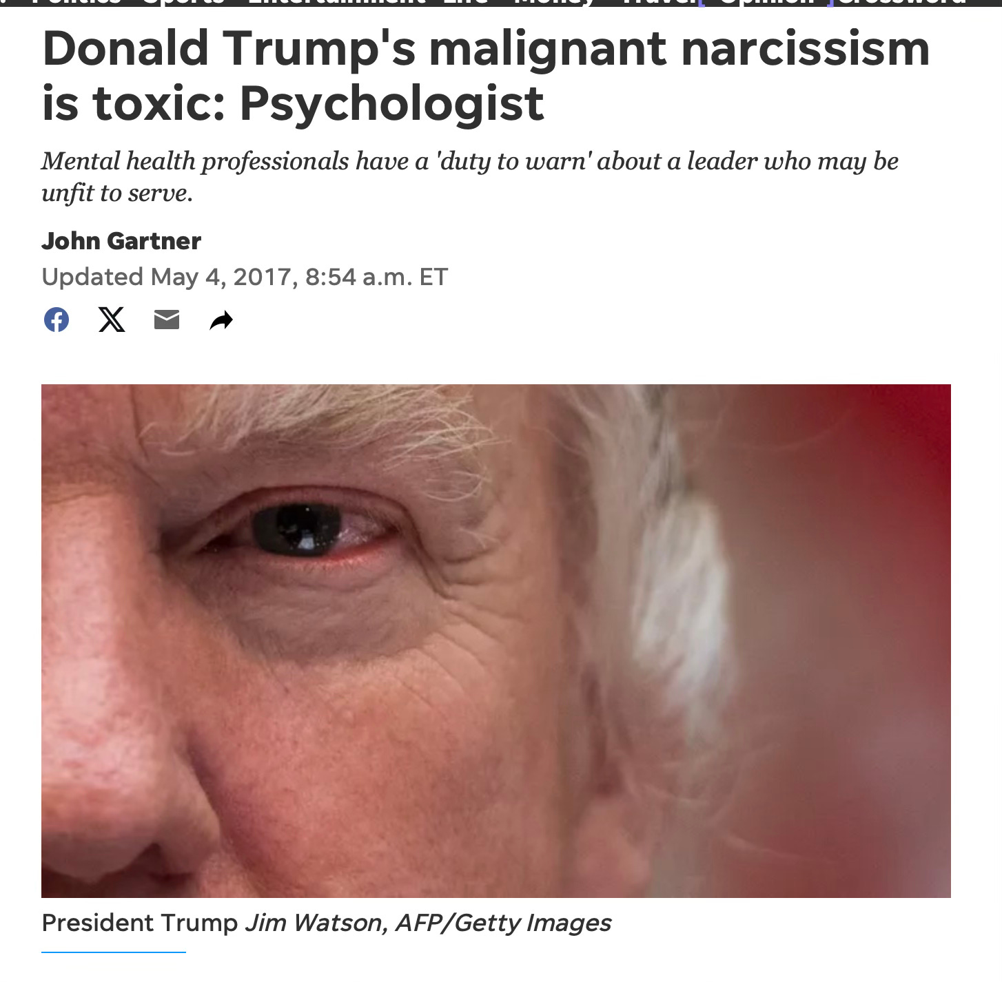 Like Gartner I began to write about how Trump was a malignant narcissist who was not only unfit to be president but also dangerous to democracy.
