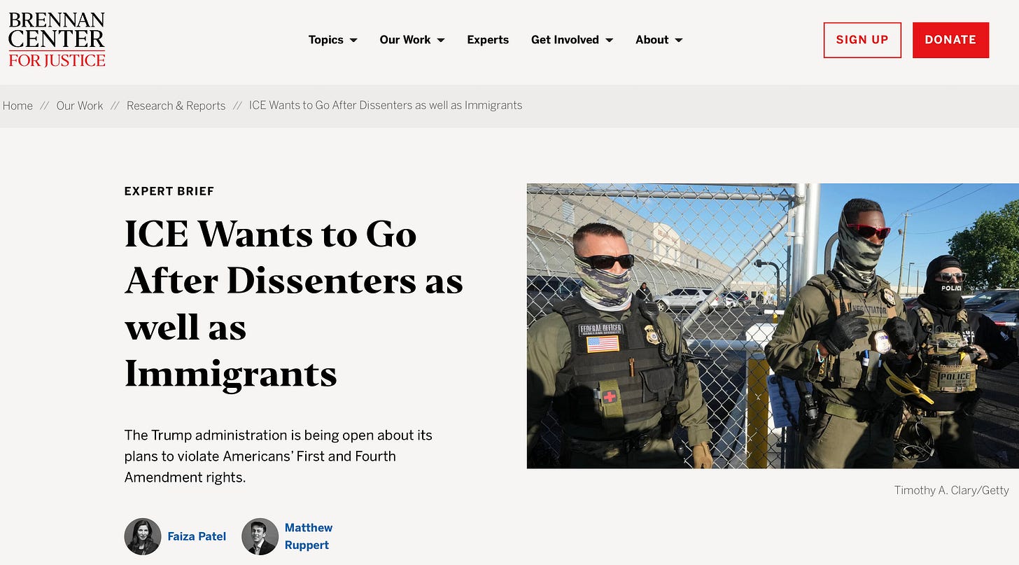Then, after sharing my idea with a few residents and having some of them express as interest in being on such a list, I realized that there were both pros and cons to this besides what I considered the unlikely risk of being physically injured by overzealous ICE agents. I’d orginally thought only of the pros. Then I started thinking of the cons, of the risks, particularly the legal ones, participants in such an endeavor might face. These thoughts hit me at midnight when I decided I’d write this Substack. I couldn’t stop thinking about what I wanted to say, so I got up.