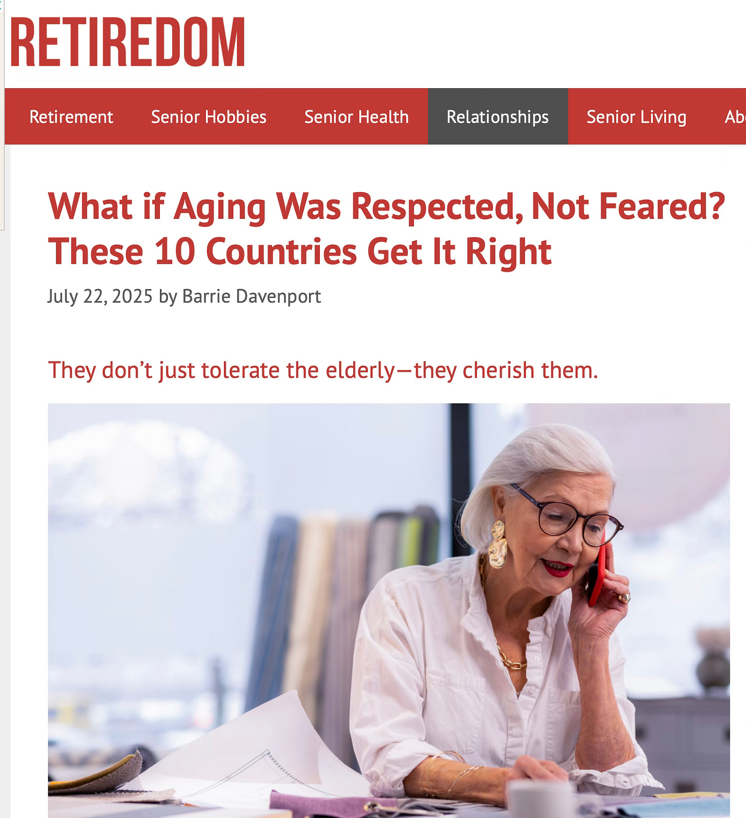 In the article below the 10 countries who most value their elders are listed. The United States in not on the list.