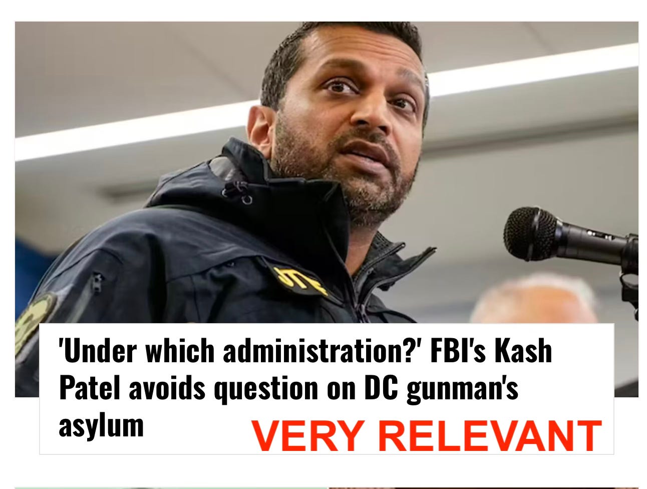 • FBI Director Kash Patel dodged a question about whether the suspected Washington, D.C., gunman was granted asylum during Donald Trump’s presidency.