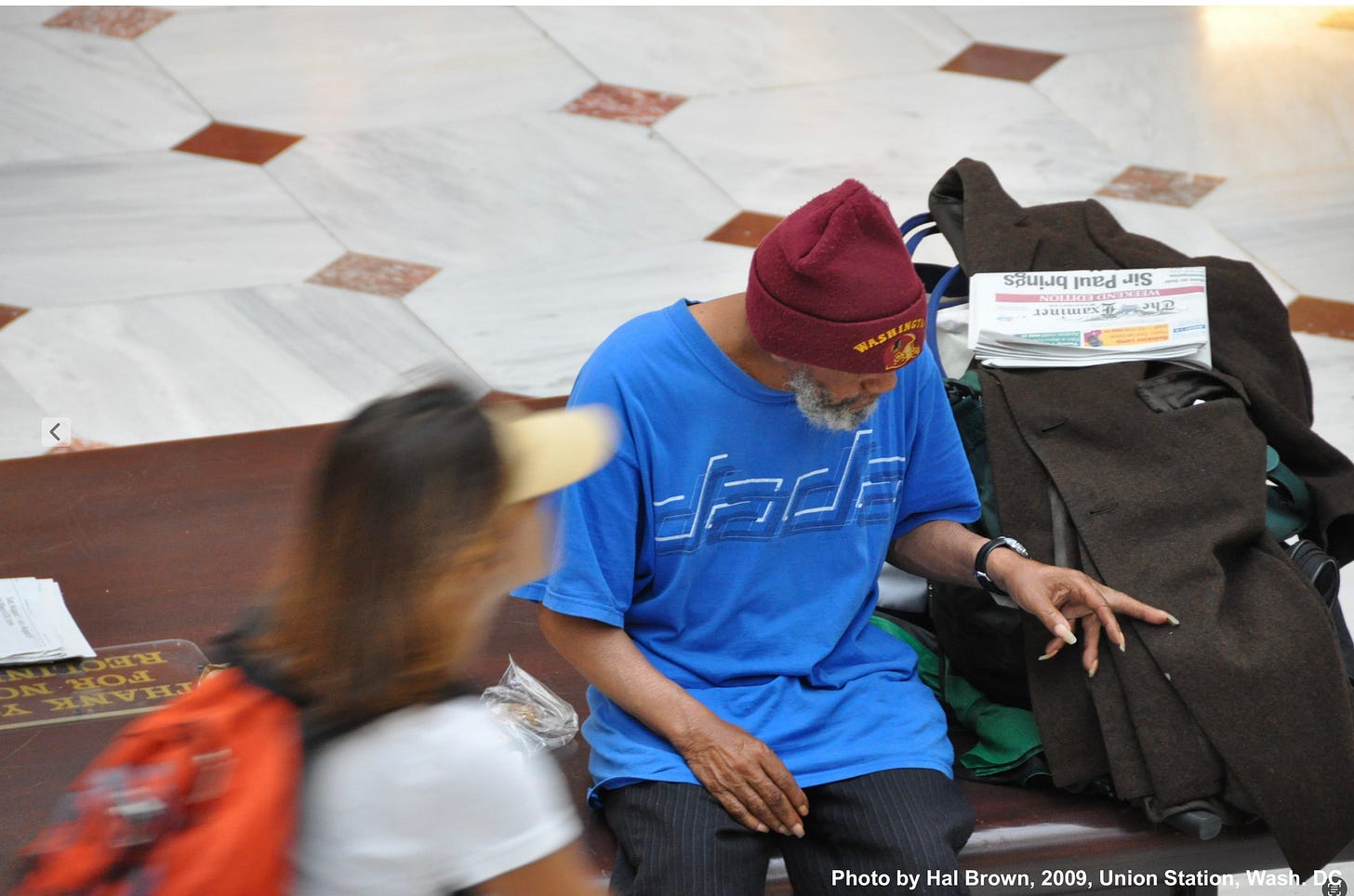 I took several photos of the man shown above in Union Station, but the one that I captured serendipitously conveyed something I think is important. Here it is again:
