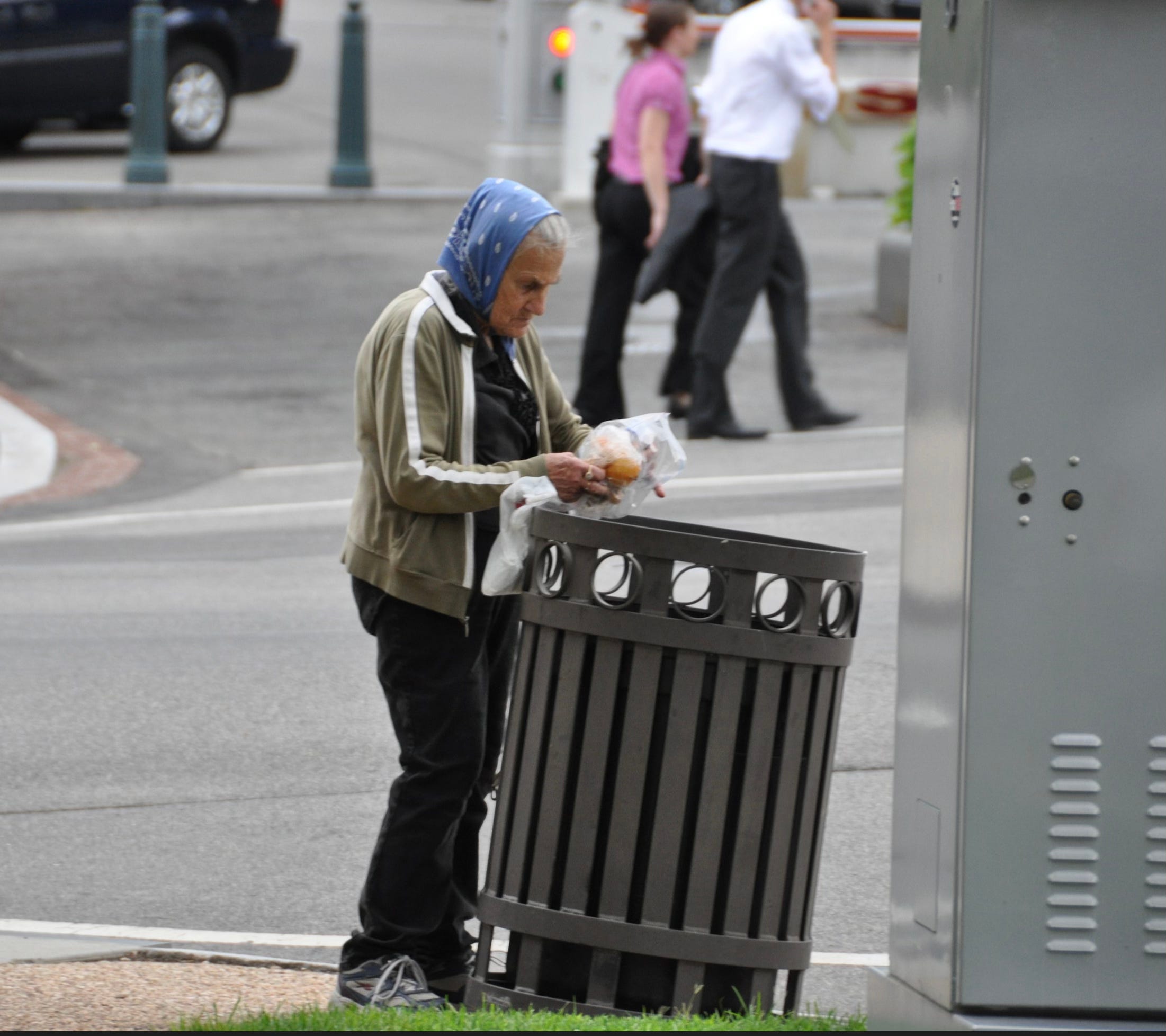 There are two people in the photo. One is the homeless man and the other a woman walking by. As is typical in such situations, the passerby doesn’t look at the homeless person. They are non—people to so many. By chance I had my camera set on a slow speed so, because she is moving, instead of freezing her image, she is seen as blurred. I think this is what makes this photo compelling.