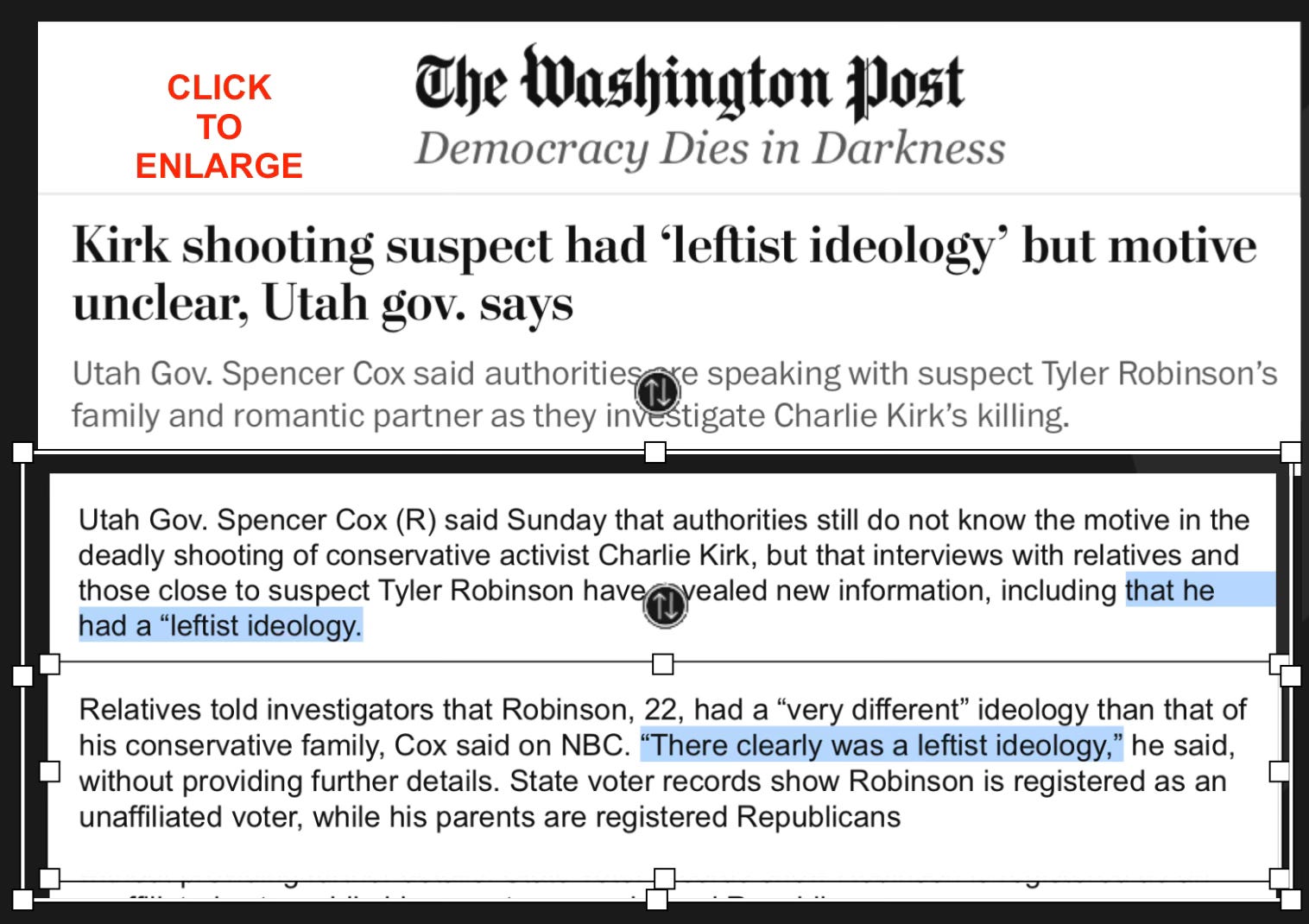 I can only surmise that Gov. Cox was under pressure to jump on the Trump train which he succumbed to by describing Robinson as having leftist ideology.