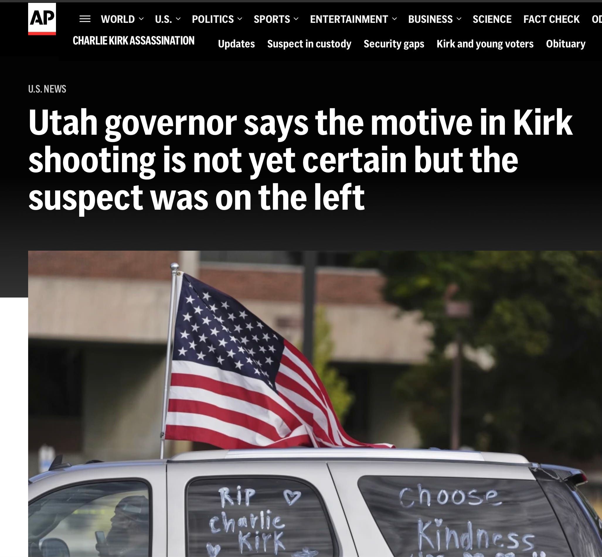 The fact is that the exact motive for the shooting of Charlie Kirk has not yet been confirmed. In fact the exact motive may never be confirmed. Even if Robinson eventually states what his motive was this may be either fabricated or what he wants to believe it was. What he says may be a combination of the two.