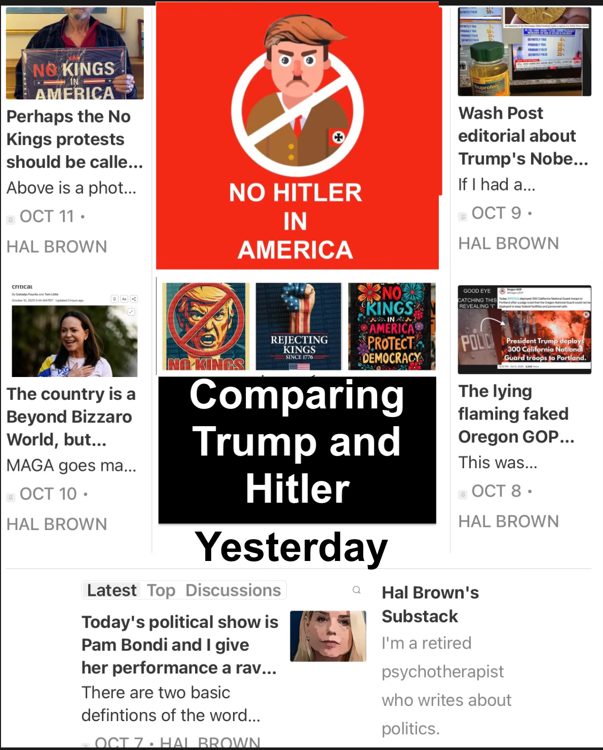 This is the third Substack I've posts about Hitler and Trump. I wasn’t going to write on this subject, but then I read Thom Hartmann’s “The Brutality is the message…” Substack.