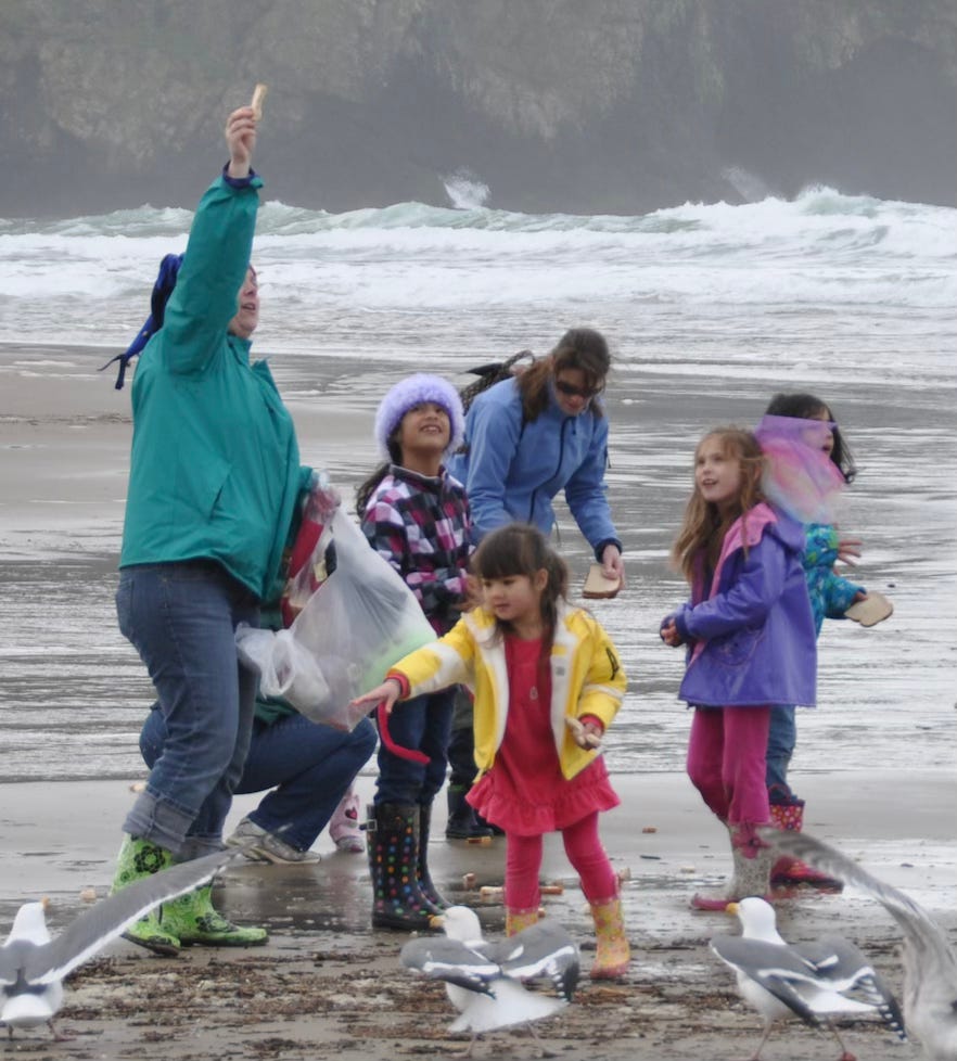 By luck I captured a moment in time that told a story. As you can see in a closer look it shows a family, especially the four little girls, expressing delight as they feed and watch the seagulls.