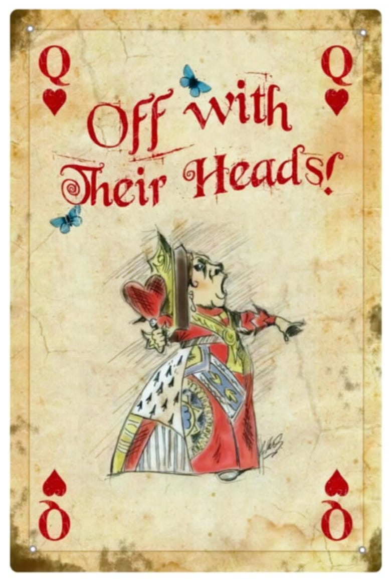 Like other manic malevolent leaders, think Wonderland’s Queen of Hearts, he relishes his power to order “off with their heads.”