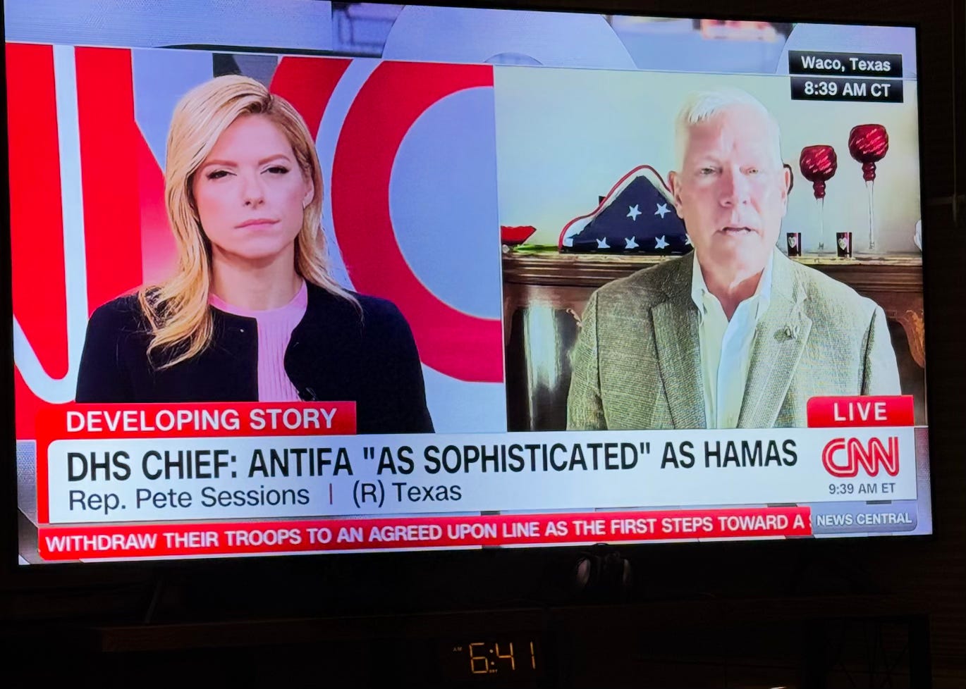 Above is what was shown on CNN when I was up early this morning trying to think of what to write about. It came on after an interview with an American relative of a hostage about to be released by Hamas. He was effusively praising Trump for this.