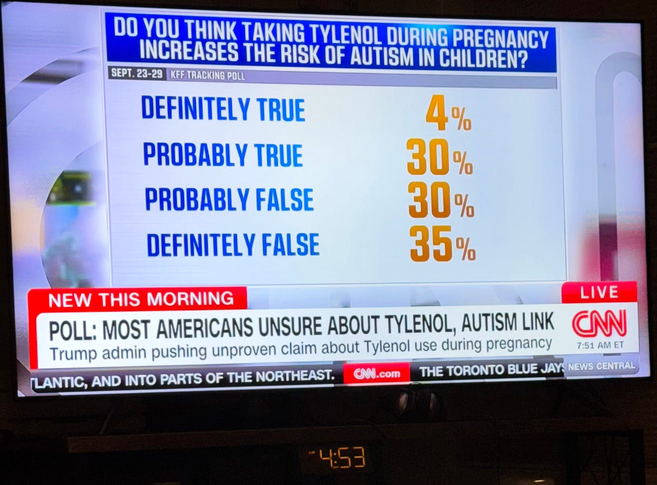 Back to the Tylenol poll: If 30% of the population have been convinced to ignore science and believe something just because Trump says it is true it shows how suspectible to propaganda certain people are. No matter what baldfaced lies are spun by Trump and his minions, there are people who believe them.