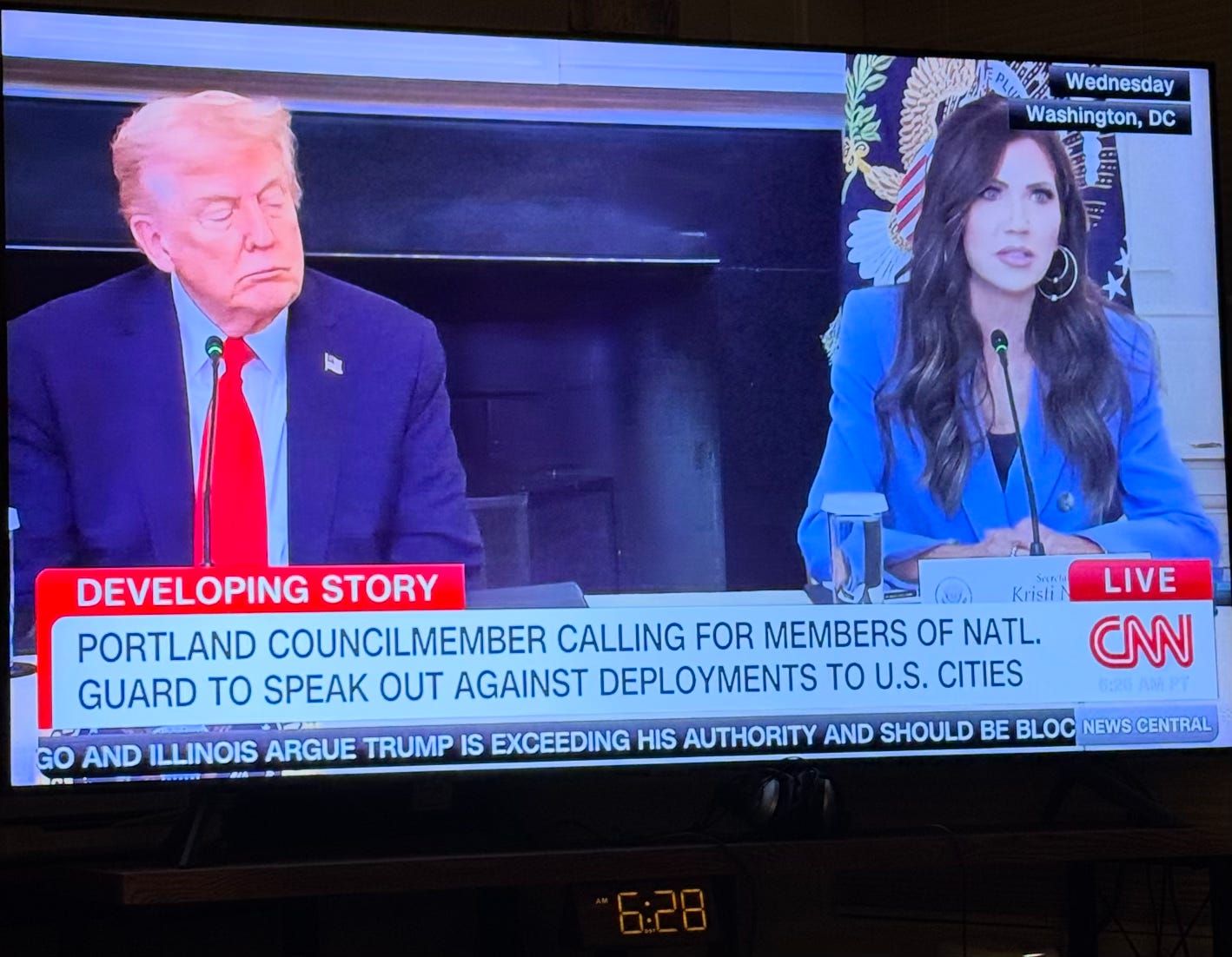 Just as I finish writing this, Kristi Noem is on TV sitting next to Trump lying her ass off about what she saw in my city of Portland. Millions of people will see and believe this.
