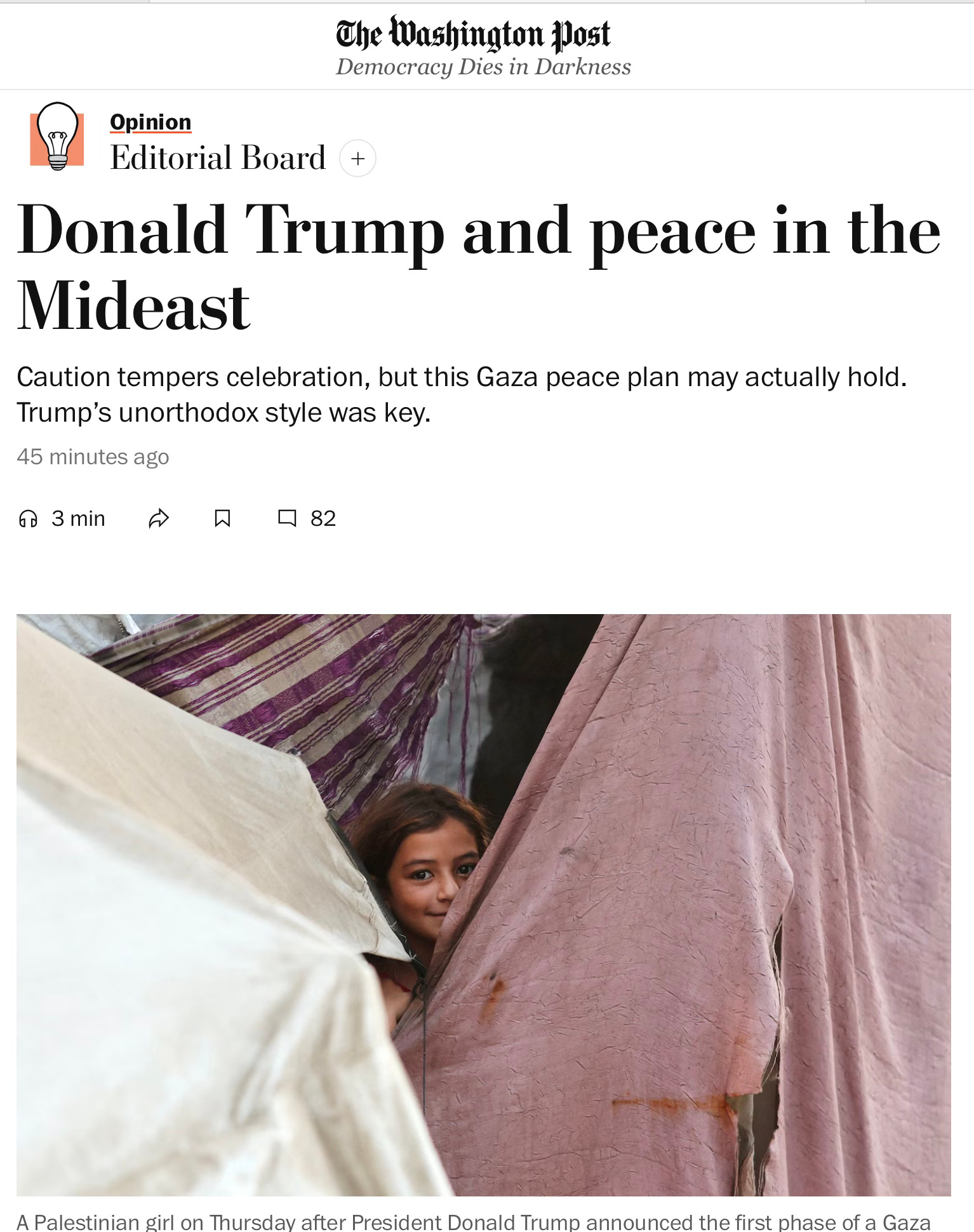 Wash Post editorial about Trump's Nobel Peace Prize and Tylenol poll show what dire straits the country is in, and it isn't just about headaches, by Hal M. Brown