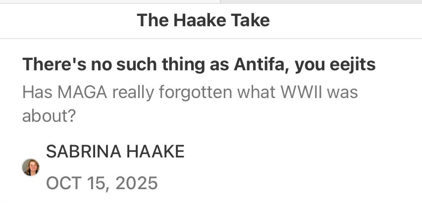 I wasn’t going to bother taking the big American flag, which I have on a long pole, to the No Kings protest we’re going to. Now I think I will. I will turn it back to right-side-up having previously changed it fly it as the distress signal upside down --- this is to send the message that everything Johnson says is an outright lie. We are the patriots. We are proud to be against fascism. As I wrote yesterday (here) being anti-fascist doesn’t make us terrorists. Quite the oposite. We oppose the terrorists.
