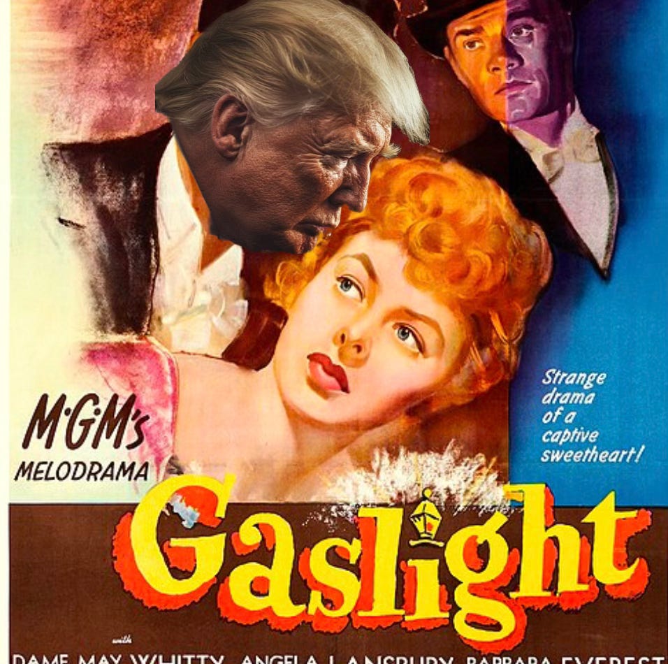 The term originated in the 1938 play and 1944 film, “Gaslight,” where a husband manipulated his wife into thinking she had a mental illness. Here’s my version of the poster: