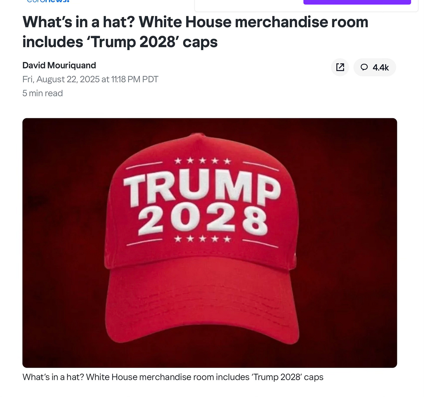 In this day and age, politicians don’t really have to formally announce their plans to run for an illegal term. It is enough to put something on their merch shop. For example Trump has his Trump 2028 hat (article).