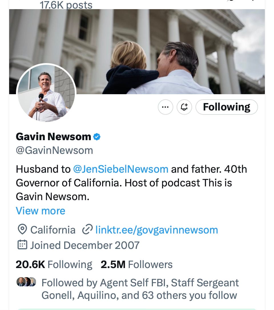 Above, this Newsom tweet, currently pinned to the top of his X page, is making the news. You can follow him on X here.