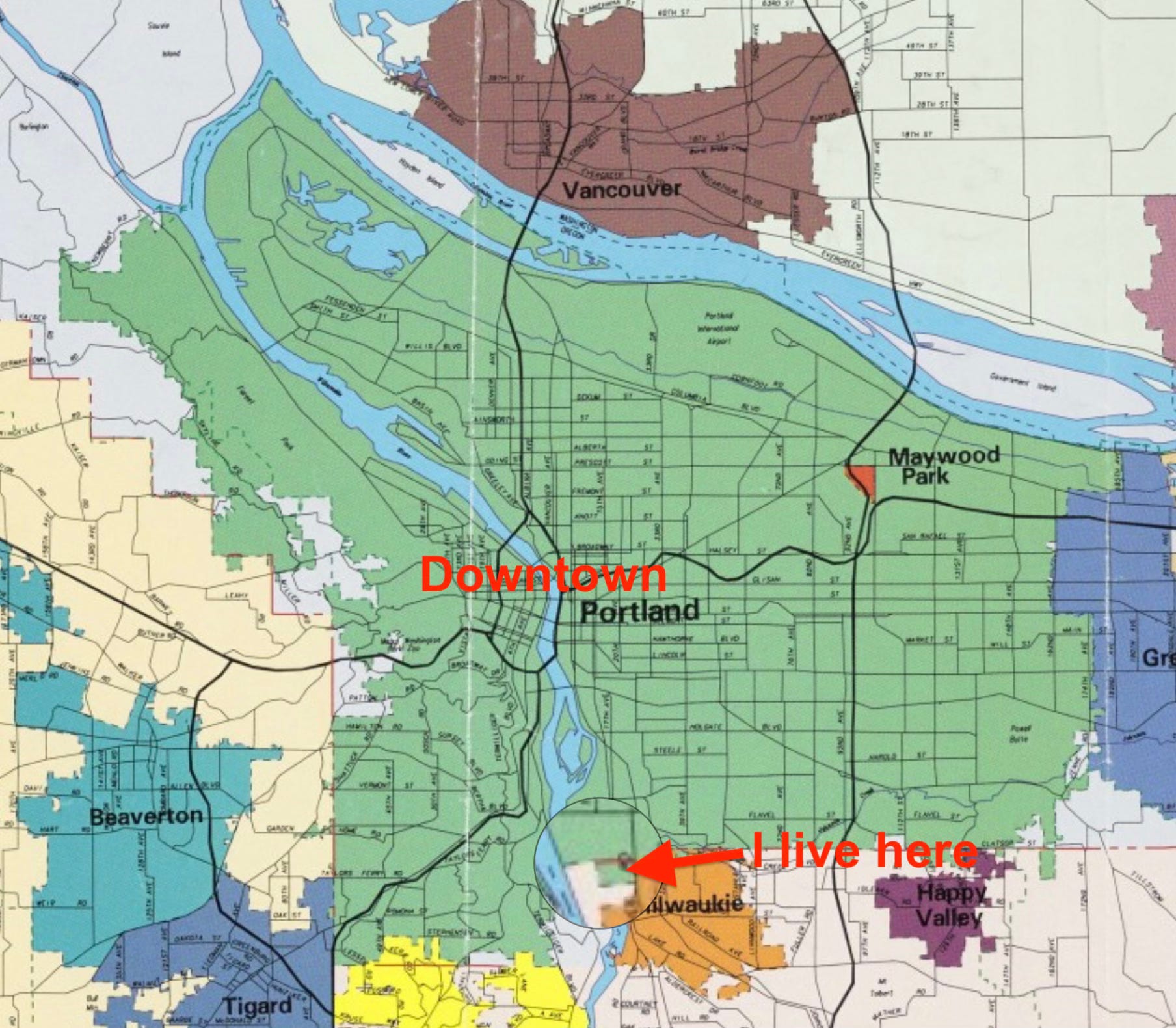 Because of a jog in the city boundries even though I’m a half hour drive from downtown I have a Portland address. Therefore I can honestly say I am a Portlander even though I really live in a suburb.