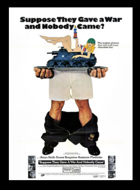 The slogan above is derived from an American antiwar slogan from the hippie subculture during the Vietnam War era. It was popularized by Charlotte E. Keyes in her 1966 article for McCall’s magazine titled “Suppose They Gave a War and No One Came.” It was also the title of a movie.