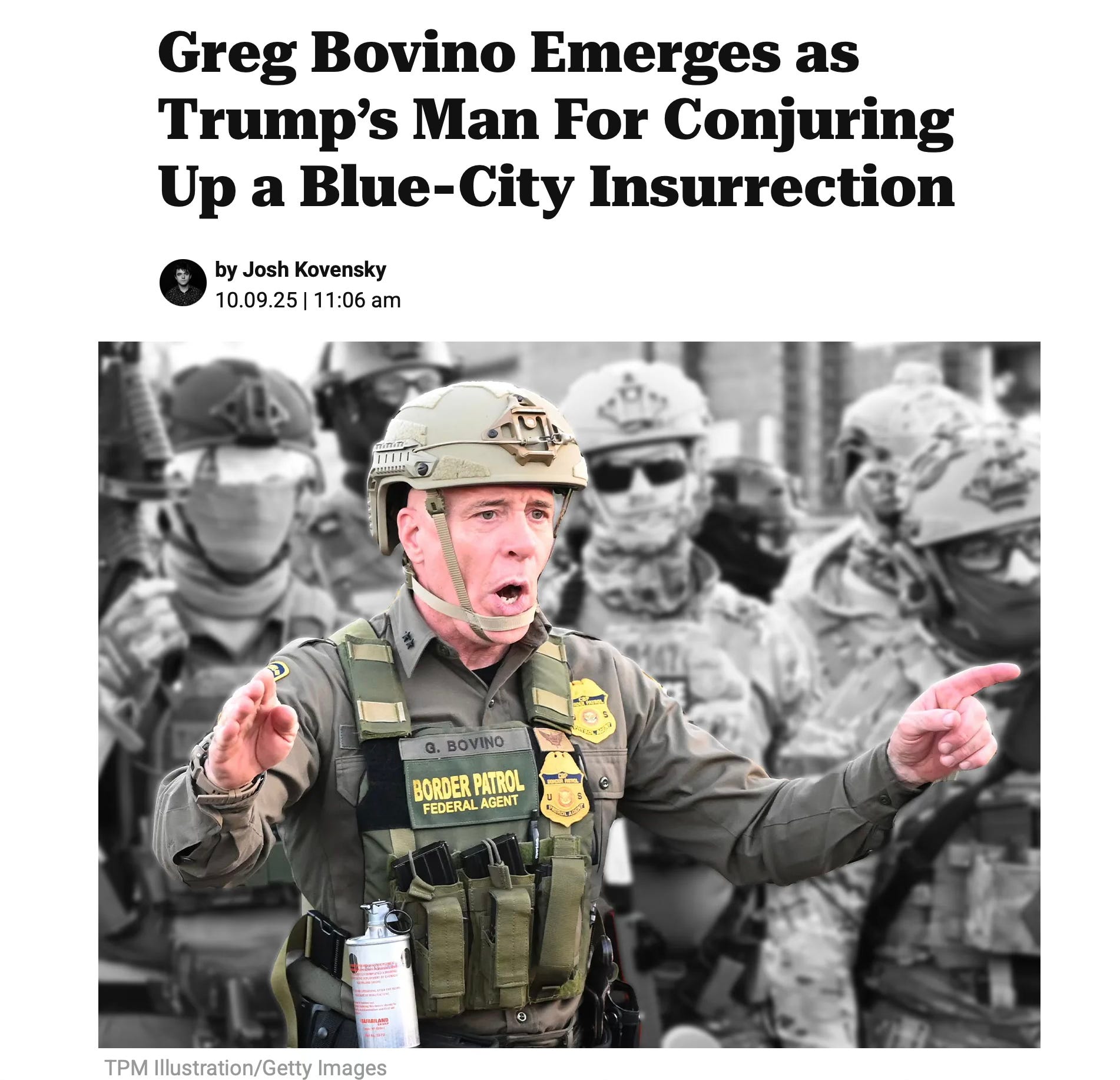 • What’s made Bovino’s tactics so shocking to local officials and observers across the country is not just the way they merge military-style operations with immigration enforcement, but the way in which the spectacle itself is intensely calibrated. It often involves sending CBP and ICE employees to perform work for which they are not trained: the CBP does not prepare its employees for urban policing or crowd control, Kerlikowske said. It’s a different mission from what many officers joined to do, he added.