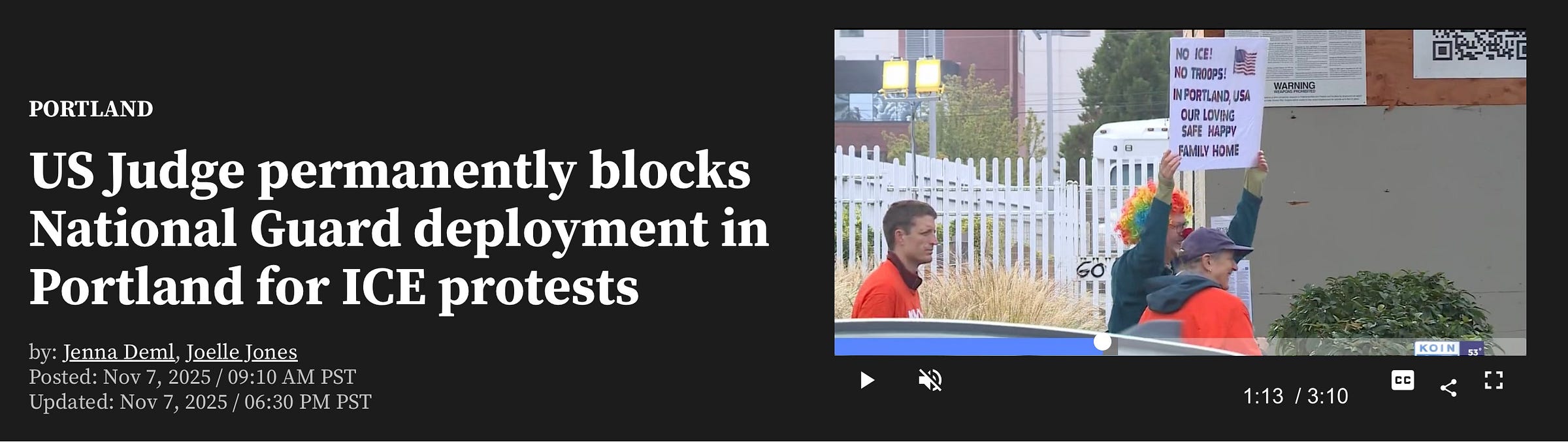 This is THE major story. We will see whether the judge’s ruling permanently blocking federal troop here is abided by.