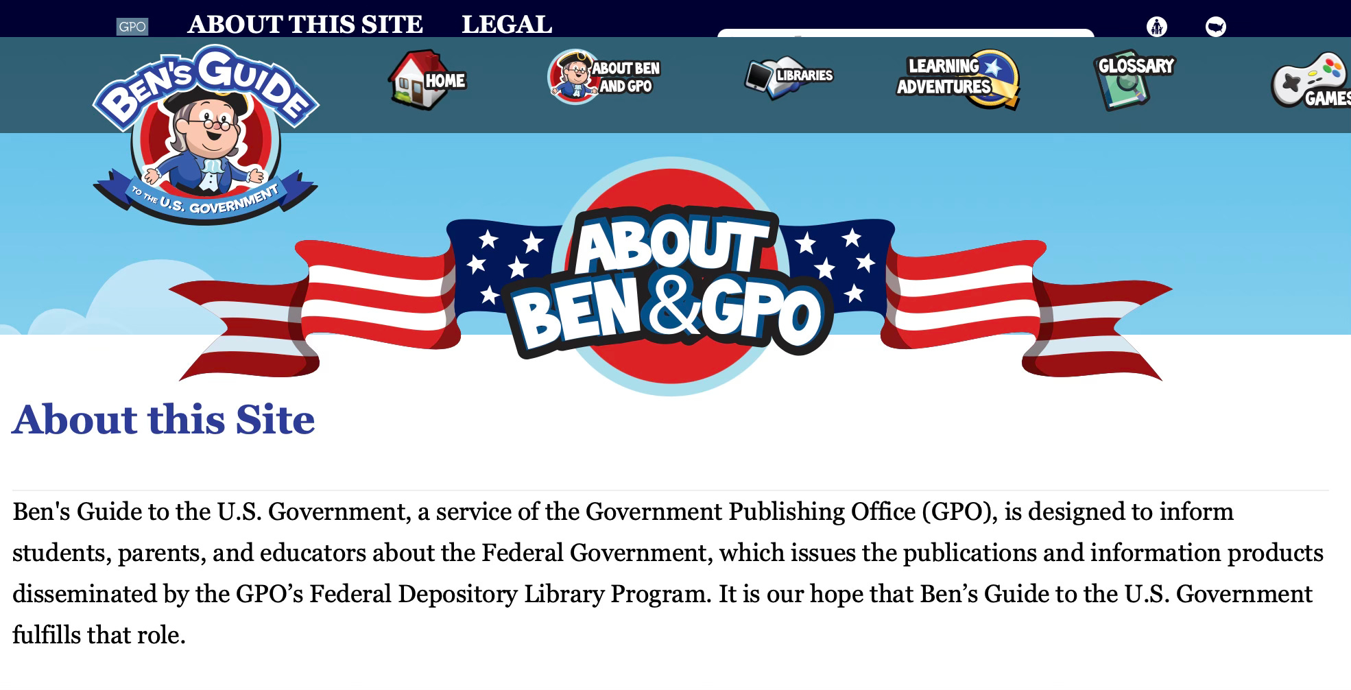 Above is actually still on this US government website for children called Ben’s Guide. Ben of course, is Ben Franklin.