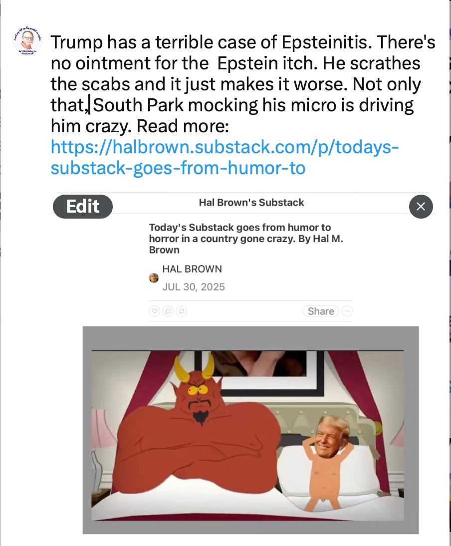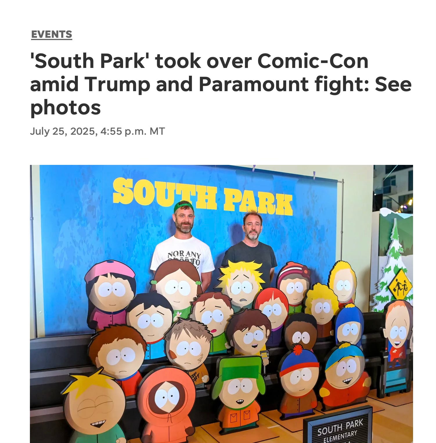 I posted a link to yesterday’s Substack about South Park’s show about Trump on Facebook and it was removed for the reason shown below.
