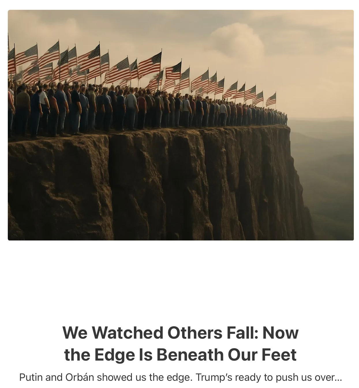 Increasingly, Americans are realizing that Vladimir Putin, Viktor Orbán, and Donald Trump are all reading from the same authoritarian script that Hitler first authored, and if we don’t recognize the pattern soon, we may find ourselves locked in Act III with no exit.